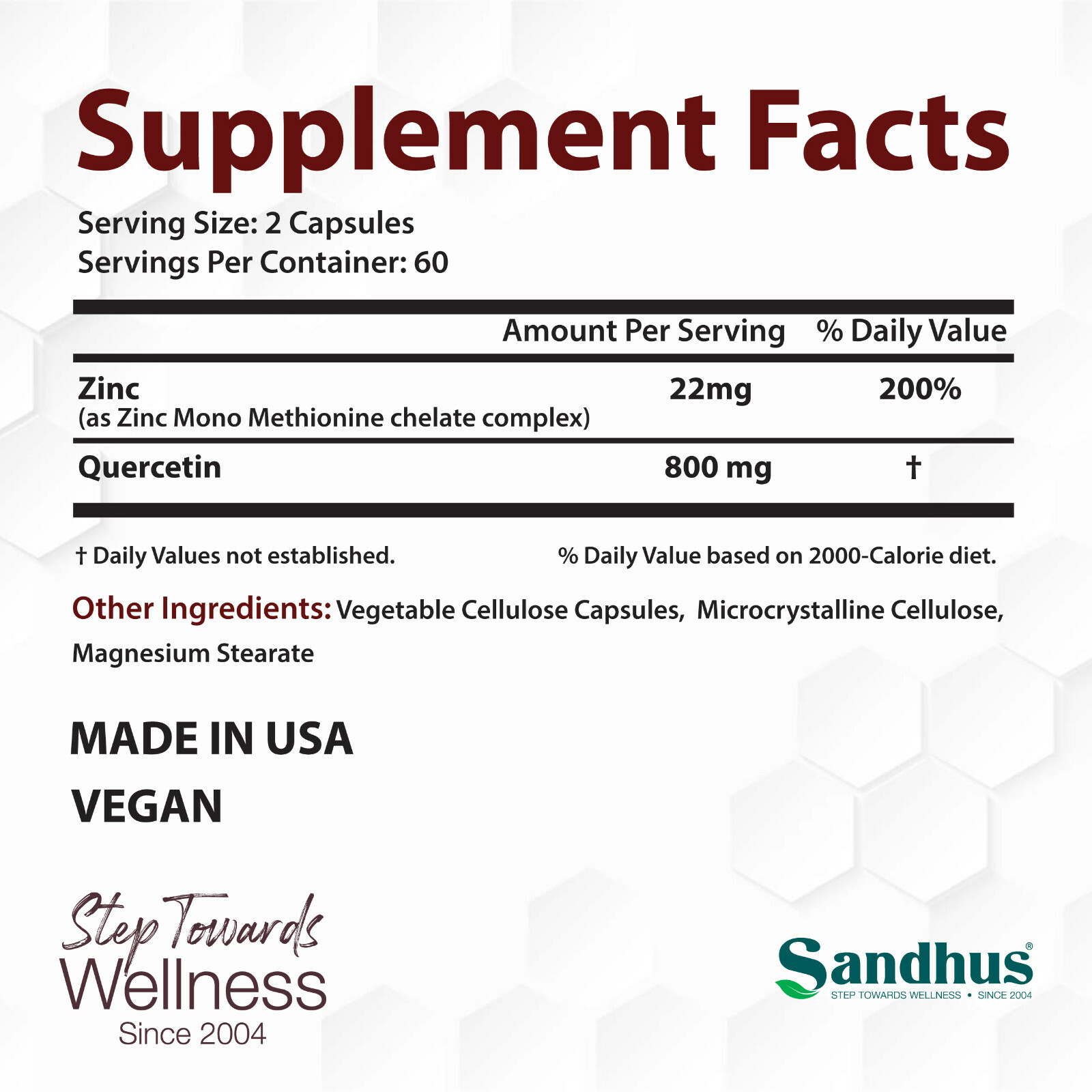 Ingredients | Microcrystalline Cellulose, Vegetable Cellulose, Magnesium Stearate, Zinc, Quercetin |
