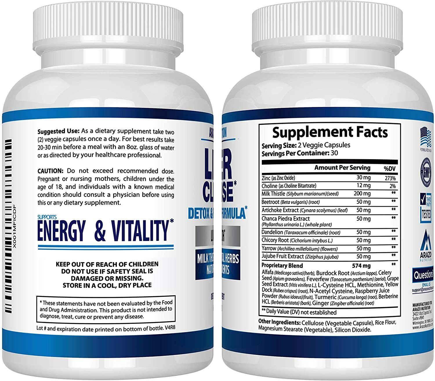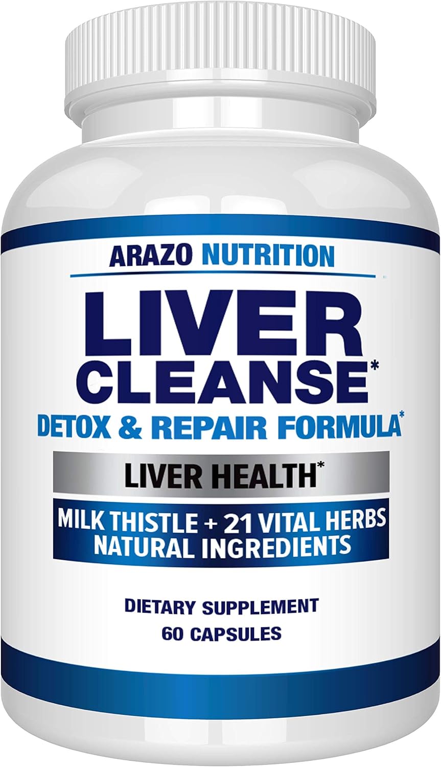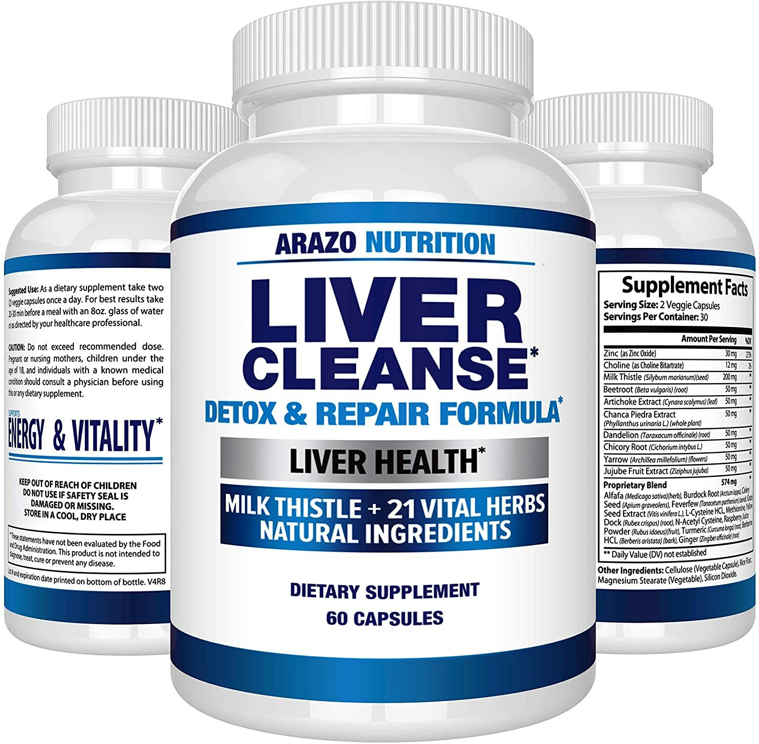 Liver Cleanse Detox & Repair Formula – 22 Herbs Support Supplement: Milk thistle Extracts Silymarin, Beet, Artichoke, Dandelion, Chicory Root – Arazo Nutrition