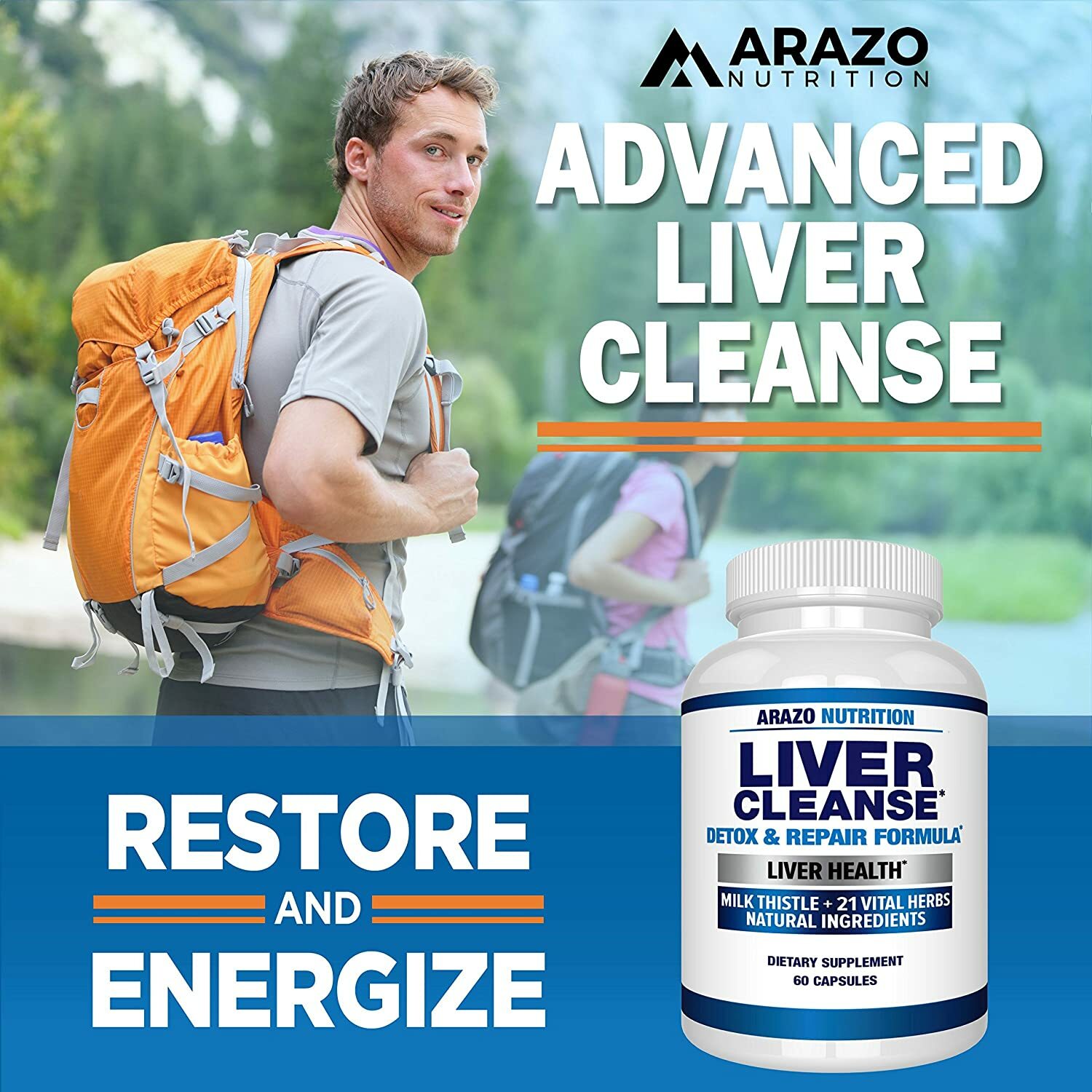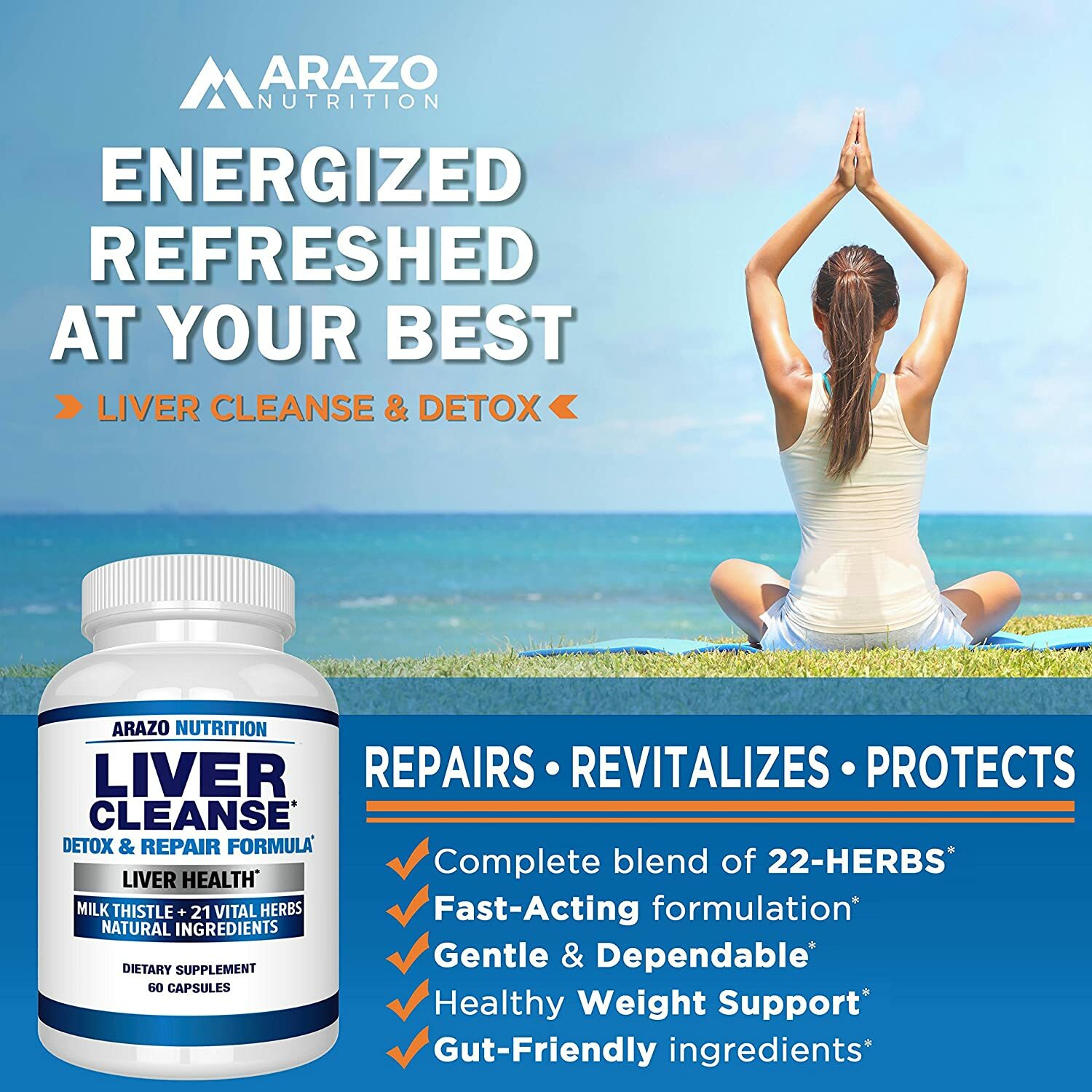 ✔️Liver Cleanse Detox & Repair Formula – 22 Herbs Support Supplement: Milk Thistle Extracts Silymarin, Beet, Artichoke, Dandelion, Chicory Root – Arazo Nutrition
