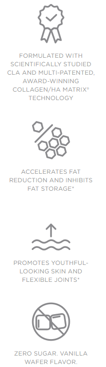 • Formulated with scientifically studied CLA and multi-patented, award-winning Collagen/HA Matrix® Technology